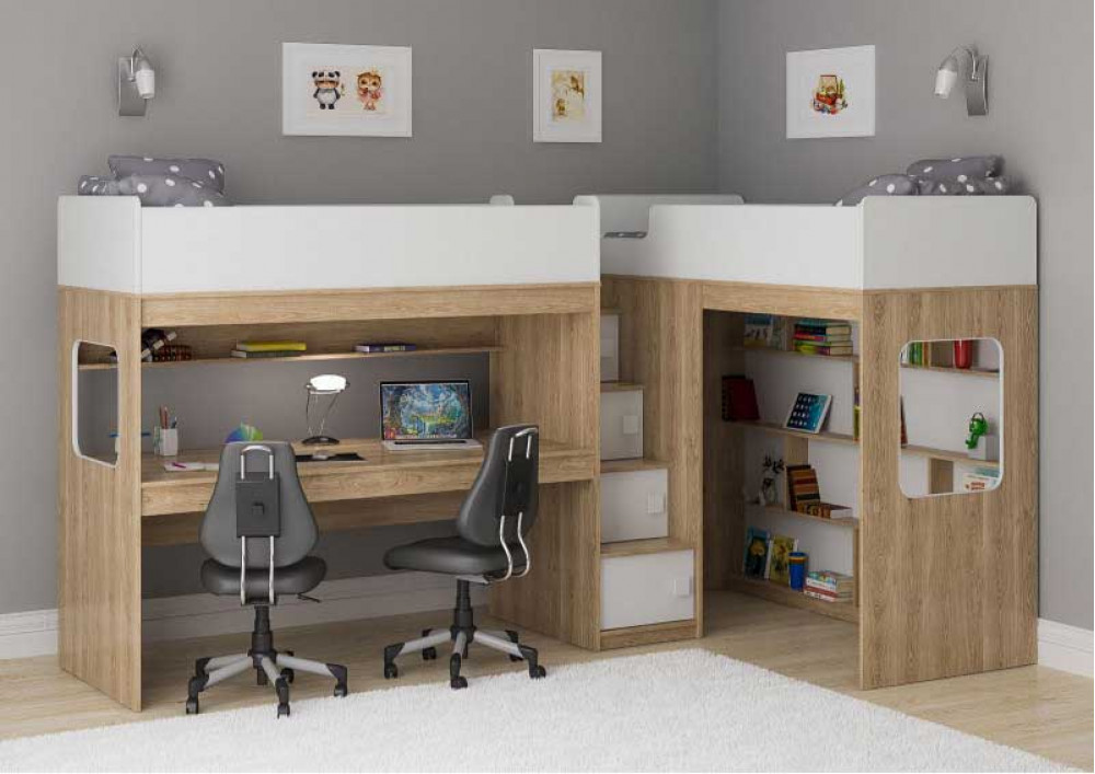 Две кровати, огромный стол, игровая зона – одна лестница. Идеальный вариант для двоих детей!