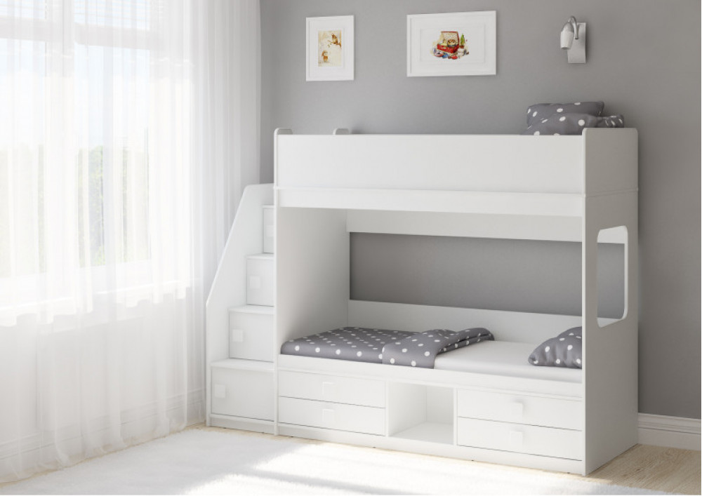 Под нижним ярусом раполагаются 4 выдвижных ящика. Теперь у каждого ребенка есть свои места хранения вещей и игрушек.