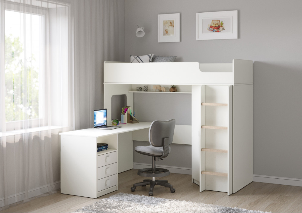 Учебная зона со столом под спальным местом открывает возможности для письменных работ,а также здесь удобно расположить ноутбук.